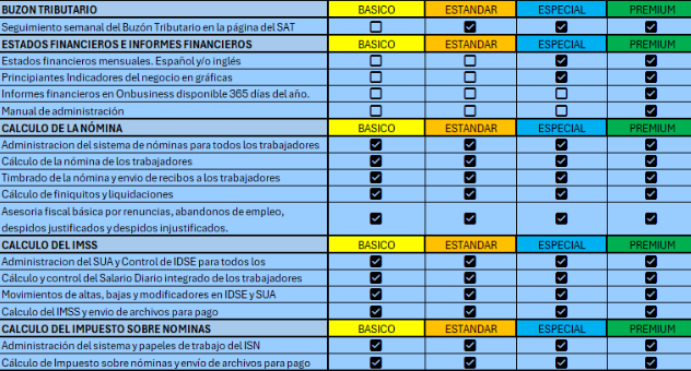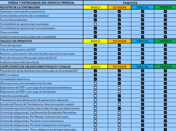 Aquí te mostramos 4 paquetes de servicio que tenemos. Conoce como trabajamos, algunos de los entregables que manejamos, puedes compararlo con servicios de otras páginas web, despachos o firmas de contabilidad y elige tu mejor opción